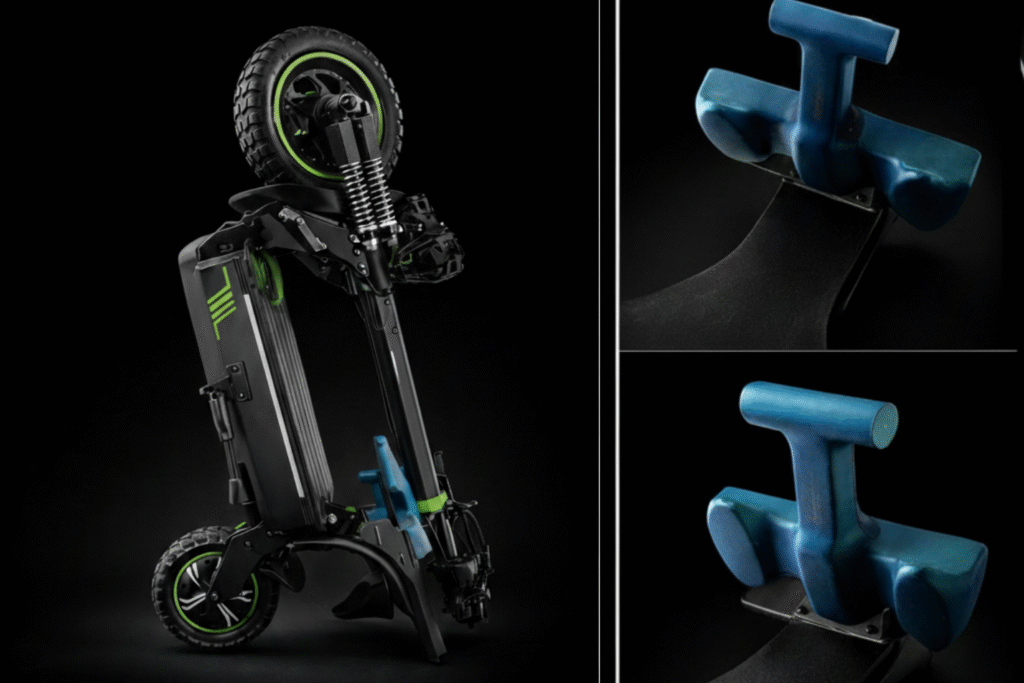Desde el punto de vista de diseño industrial, el proyecto integra estructura portante, ergonomía y funcionalidad expandida en un solo módulo. El resultado es un accesorio que no solo complementa la patineta, sino que redefine su alcance de uso dentro del ecosistema de movilidad eléctrica urbana.